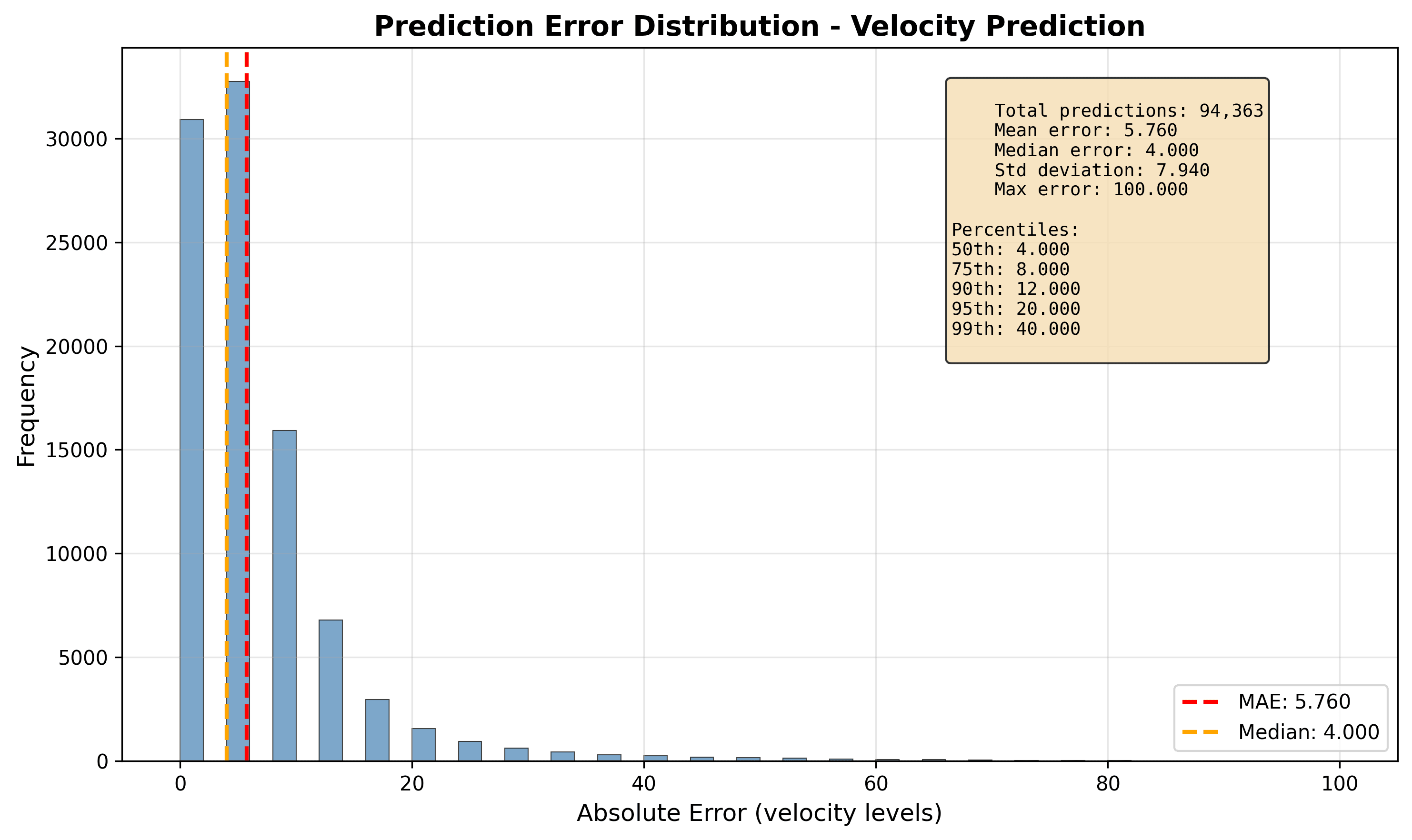 The AI could choose from 32 possible loudness levels for each note. If the AI would random guess, it would get it right about 3% of the time. My model got it exactly right about 33% of the time, but 68% of the time, it was within one level of the correct answer.